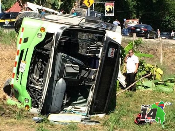 Golfito. 16 pacientes trasladados en condición amarilla, 4 en verde y 4 en rojo, fue el saldo del vuelco de un bus este martes en el km 24 en Golfito.