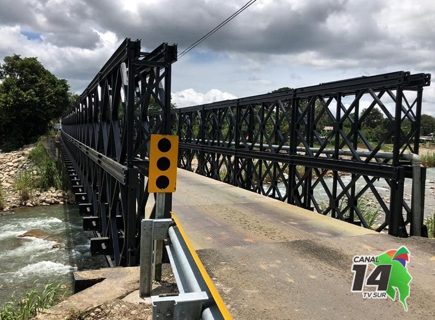 Pérez Zeledón. Con una inversión de 50 millones de colones por parte de la Municipalidad de Pérez Zeledón, se rehabilitó y se dio mantenimiento de la estructura del puente bailey sobre el río General, que comunica el distrito de Daniel Flores con el distrito de General.