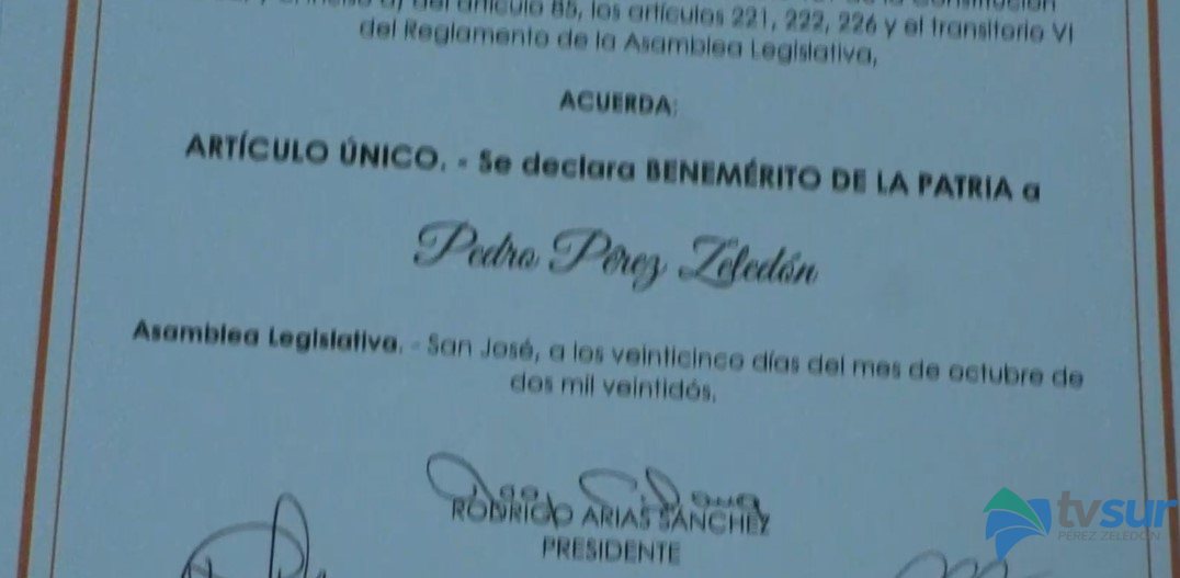 En octubre de 2022 se votó el expediente 23024 que permitió declarar Benemérito de la Patria a Pedro Pérez Zeledón.