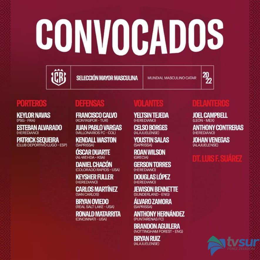 Pérez Zeledón. El entrenador colombiano Luis Fernando Suárez dio a conocer la convocatoria de 26 jugadores para la Copa del Mundo de Catar.