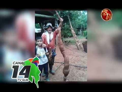 En un pequeño video, se aprecia a un vecino cuando sostiene esta gran yuca que puede medir casi los dos metros de largo y hasta hacen la comparación con una yuca común.