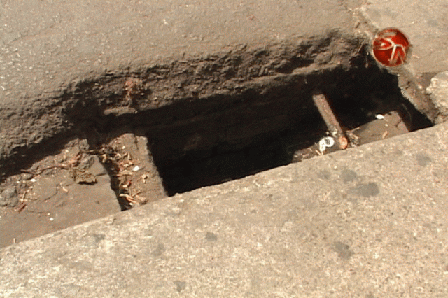 El vecino con cinta en mano, midió el hueco que tiene 20 centrímetros de ancho y entre 50 y 80 centímetros de profundidad.