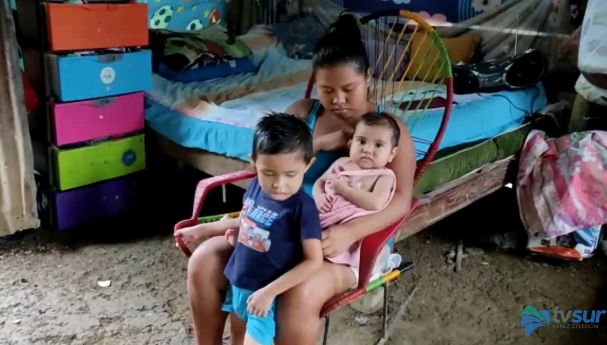 Cuando llueve la vivienda se llena de Agua, las goteras caen por todos lados, incluso en la cama donde duerme la bebé y su hermanito, de tres años quien padece de autismo.
