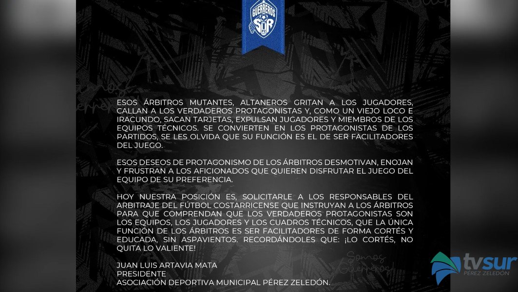 TV Sur NoticiasDeportesDestacadas Presidente del Pérez Zeledón cuestiona protagonismo de los árbitros en las canchas Por Carmen Picado - 10 de abril de 2023 0 539 FacebookTwitterPinterestWhatsApp