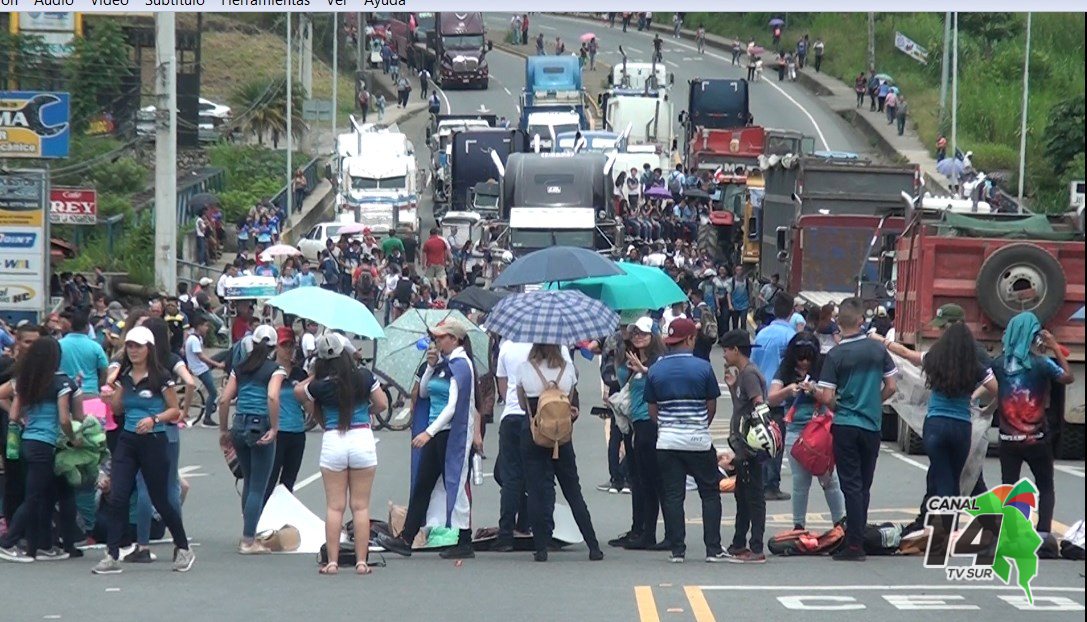 Pérez Zeledón. Este viernes se completó el segundo día de manifestaciones en Pérez Zeledón, a los estudiantes se unieron transportistas, agricultores y estudiantes.
